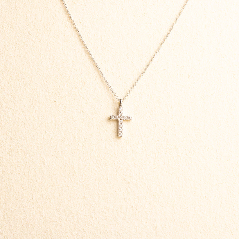 Cruz Oro Blanco Diamantes 0.083 CT Mini con cadena (VAL) 14k