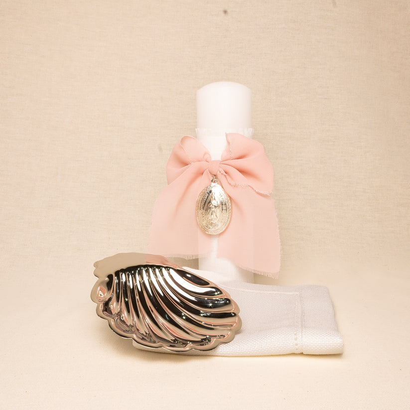 Kit Bautizo Baño Plata Moño Chiffon